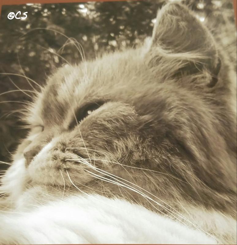 Apropos Palette: Mein Nikolausgeschenk war, uns Miez in Sepia abzuziehen. Das Bild vom Bild, das Ihr seht, ist leider unscharf....Aber ich bin begeistert davon, wie dieser schlichte Effekt Mimik und Fellstruktur unterstreicht, o h n e das Miez schwarz weiß und etwas " von gestern" aussieht ;).