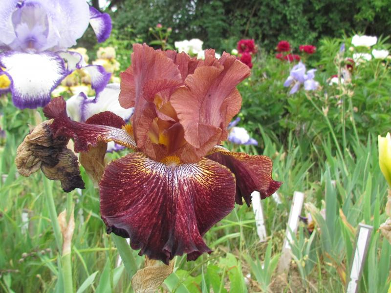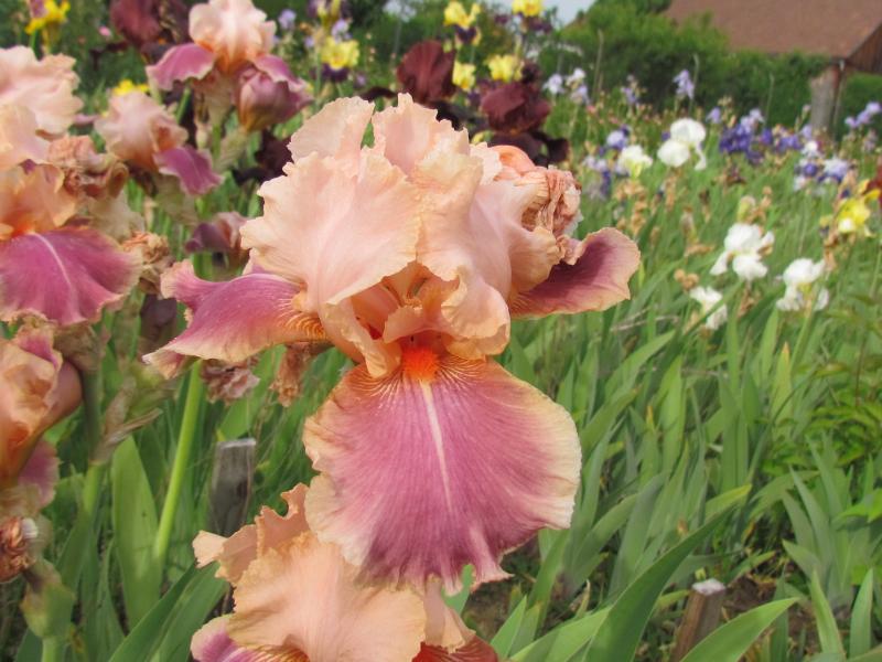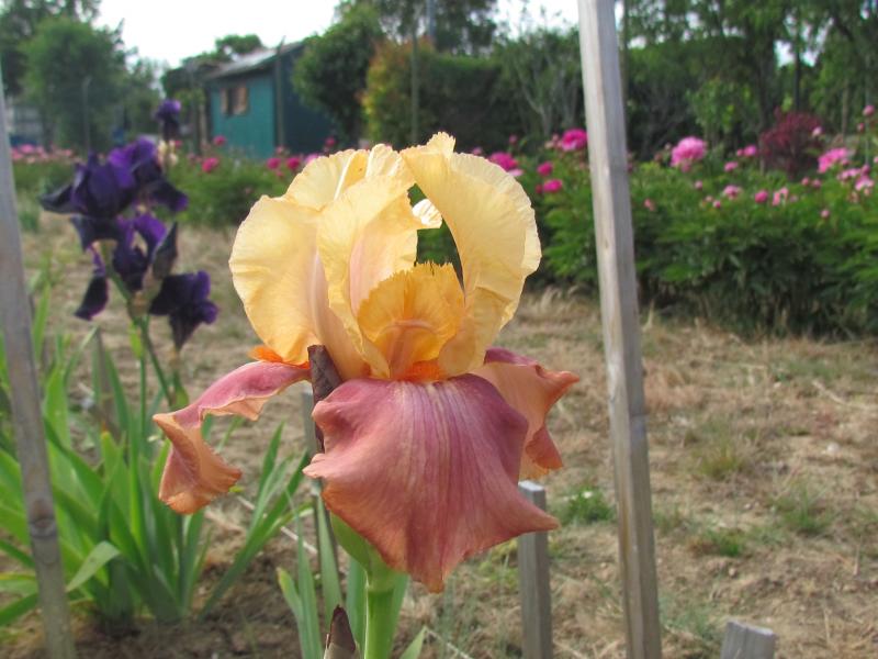Ein paar zwei- oder mehrfarbige Hohe, `Adobe Rose´, die ich eigentlich gerne habe, dieses Jahr kommt sie mir aber etwas verhärmt vor und der Bart schien früher auch weniger orange.