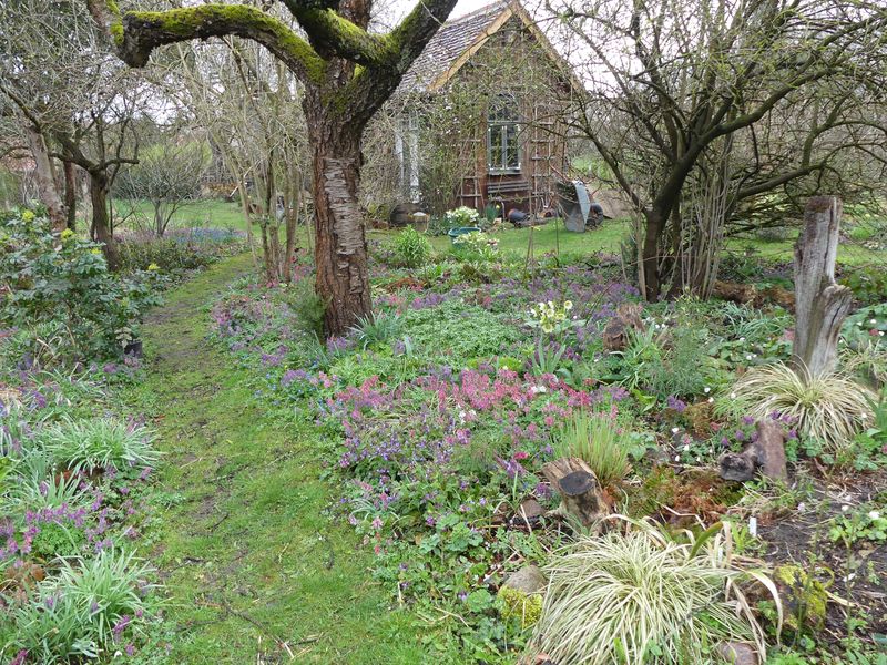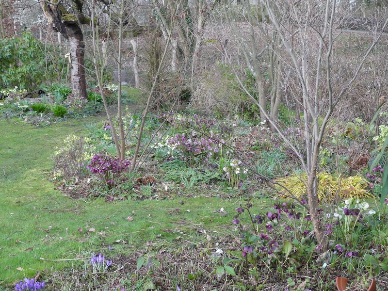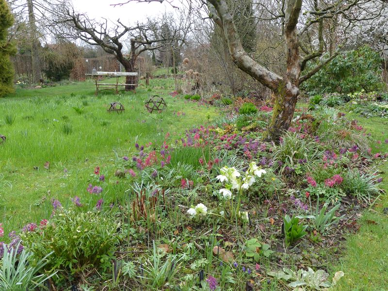 Die Helleborus-Fülle in dieser Ecke ist auf den Fotos nur zu erahnen.