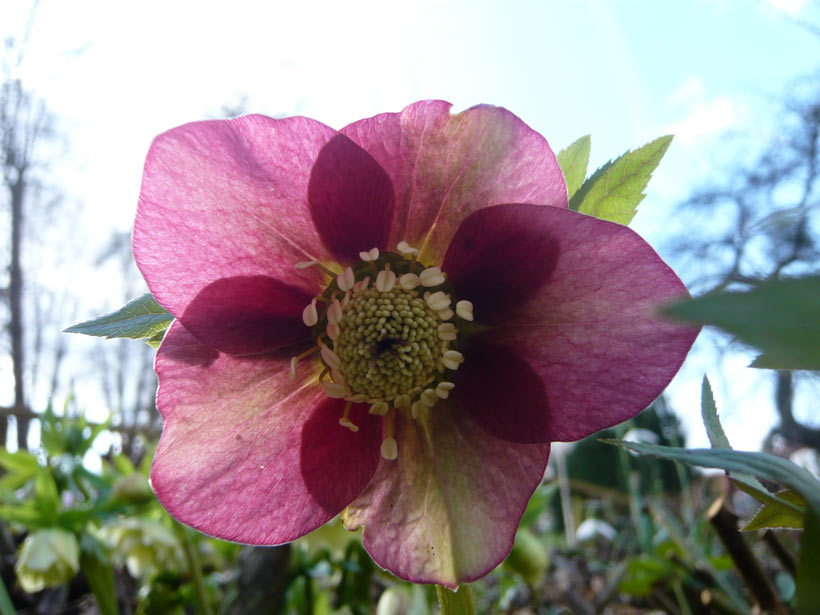 Eine der vielen bei mir blühenden Helleborussämlinge. Nichts besonderes aber im Gegenlicht sehr apart.