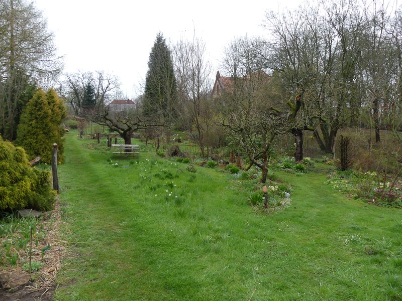 Und eine gute Idee: entlang der Beete mähen und in der Mitte der Wiese sitzen die Zwiebelblumen, dort darf alles ungestört wachsen.