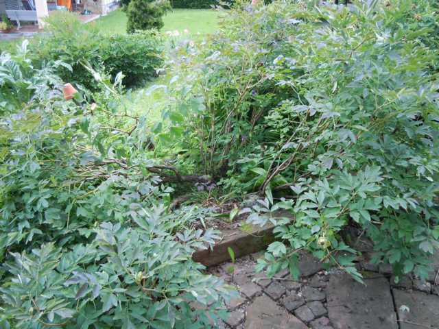 Hier die Basis der Pflanze. Sie wird sich wieder erholen, keine Frage. Ich schneide das umgebrochene weg und sie wird aus der Basis nachtreiben.Allerdings hab ich eigentlich keine Lust, meine Strauchpfingstrosen später abzustützen.