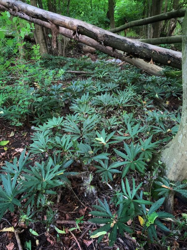 Massenbestand an Nieswurz, in einem totholzreichen Wald direkt neben der Lichtung
