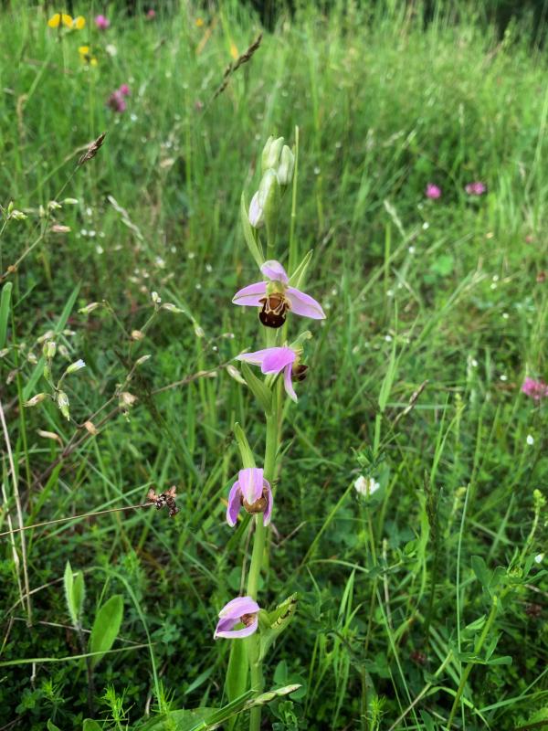 Der Vollständigkeit halber auch nochmal die Bienenragwurz die ebenfalls dort wuchs jedoch etwas höher als die Knabenkräuter und am sonnigen Gehölzrand. Nicht so spannend wie die anderen Orchidenn, da es im Gegensatz zu anderen Orchideen eher zunimmt als abnimmt.
