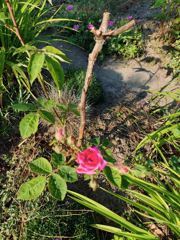 So wie es aussieht hat die produzierende Baumschule wohl einbeinige Rosenveredelungen als Ministammunterlage recycelt oder so.