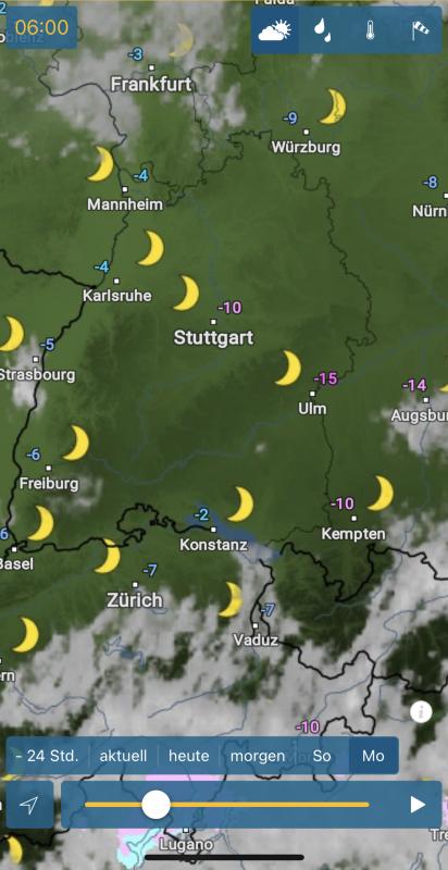 guck dir mal dieses Video an - https://www.youtube.com/watch?v=2q26HXIXqvc ab ca. Minute 7 geht es ums Wetter am Samstag bis Sonntag bei Minute 9 um das Wetter von Sonntag auf Montag. Die Werte sind der direkte Modelloutput, also nichts selbst zusammengedichtetes. Ganz simpel: wenn Schneedecke, Polarluft und klarer Himmel nachts wird es so kalt. Wenn der Himmel bedeckt bleibt, oder der Schnee schon geschmolzen ist (es ist für die Region Dauerfrost angesagt... :(), dann nicht.