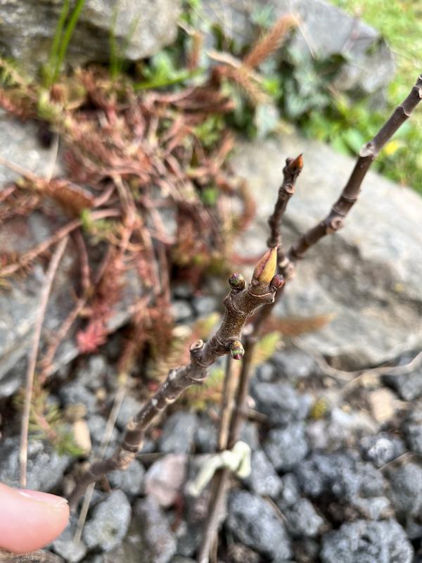 Letzte Nacht war weniger schlimm wie erwartet. Das Thermometer fiel nicht unter 0 Grad. Aktuell mehr oder weniger Sonnenschein bei +8 Grad. Für die Nacht wurden zwischen -2 und -7 Grad vorhergesagt. Mal schauen, was es letztendlich wird. Morgen schleppe ich wieder alles ins Freie, die frostigen Nächte dürften dann vorbei sein. Meine Col de Dame blanc treibt an einem vollsonnigen Platz schon fleißig aus. Mit der hatte ich ja am alten Standort mit nur wenigen Stunden Sonne Probleme. Mal schauen, ob es dieses Jahr zumindest eine Feige zum Probieren gibt :D