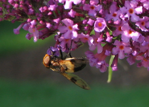 Soni,dein UFO ist eine Waldschwebfliege (Volucella pellucens).Gruß Christaunbekannte Flugobjekt