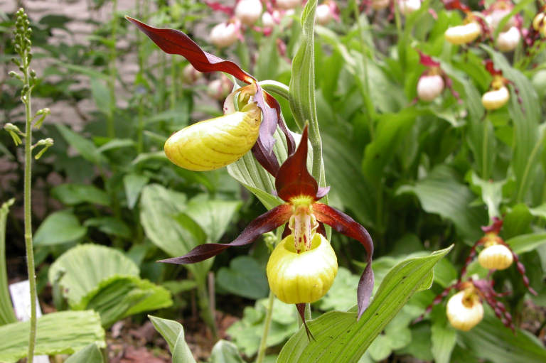 naja pumpot...kommt schon darauf an, welchen ausgangsboden man hat, wenn man mit cypripedien anfangen will. ich hatte es in meiner früheren naivität auch in meinem normalen gartenboden versucht. der war eher sandig mit damals noch nicht so hohem rohhumusanteil. das geht ne weile + dann kommt der exitus. es ist ja nicht nur der boden...es bedarf auch eines etablierten gartens denke ich, wo durch sträucher, bäume und bodenpflege ein "wald"-kleinklima mit der zeit entsteht, damit sich solche pflanzen wohlfühlen. man sieht's ja an deiner pflanzung wie du das perfekt hinbekommen hast...das kam sicher nicht von heut auf morgen. und das bisserl bodenvorbereitung...so aufwändig ist das ja nicht, wenn ich ein paar pflanzplätze für diese edlen pflanzen speziell vorbereite. wer lehmigen ausgangsboden hat tut sich m.e. am leichtesten die passenden bedingungen für cypripedien zu schaffen. sandgärtner wie irm + ich müssen da schon etwas mehr tun, damit sich längerfristiger erfolg einstellt + auch da gibt's immer wieder rückschläge.Als ich die pflanzte, mischte ich noch Substrate was ich jetzt nie mehr machen würde.