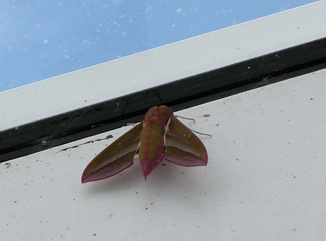 Ab und zu sehe ich einen Schwärmer in der Dämmerung am Phlox. Und einmal hat einer im Glashaus übernachtet.Gruß Christa