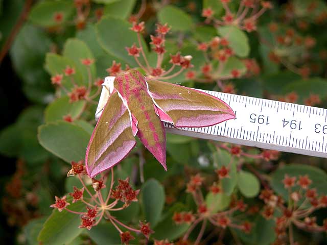 Ismene, ich habe bis jetzt fünf Dicke umgesiedelt. Ich hoffe, es gefällt ihnen in ihrer neuen Umgebung zwischen Drüsigem Springkraut und Weidenröschen. Vor der Umsiedlung konnte ich noch bei einem sehen, während der fraß, wie weit er seinen Kopf herausstrecken kann. Ganz enorme Länge.Ab und zu sehe ich einen Schwärmer in der Dämmerung am Phlox. Und einmal hat einer im Glashaus übernachtet. Da besaß ich aber noch keine besonders gute Kamera.Gruß ChristaDen Falter habe ich nur einmal ganz kurz gesehen.