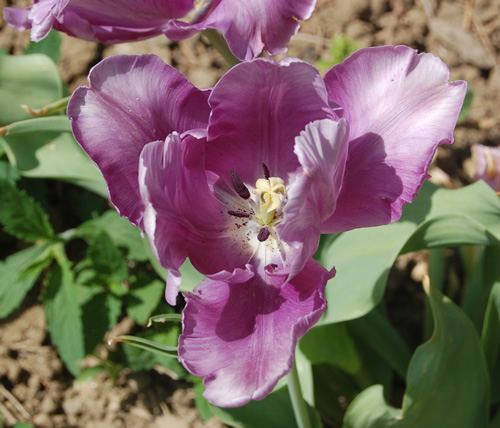 Die halbschattig stehenden Tulpen halten sich trotz der Hitze recht gut; diese unbekannte Schöne z.B. blüht schon seit geraumer Zeit: