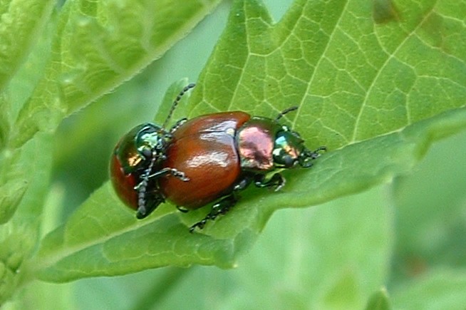 Dafür sind diese Beiden um so farbenfroher. Ich vermute die sorgen für geglätteter Blattkäfer - Nachwuchs. Oder der eine ist einfach nur faul und lässt sich tragen.