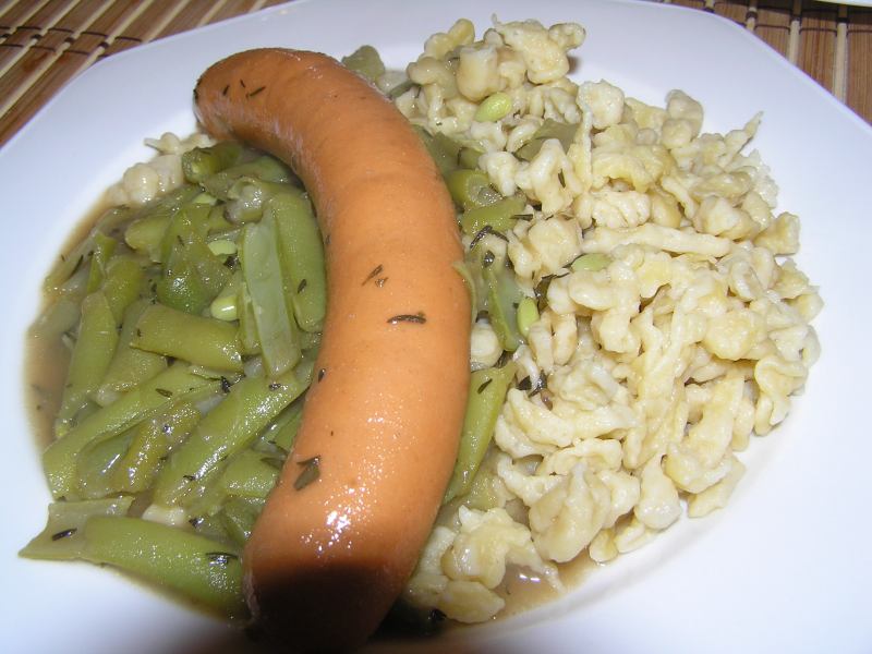 gerade gabs saure bohnen mit knackwurst und knöpfle
