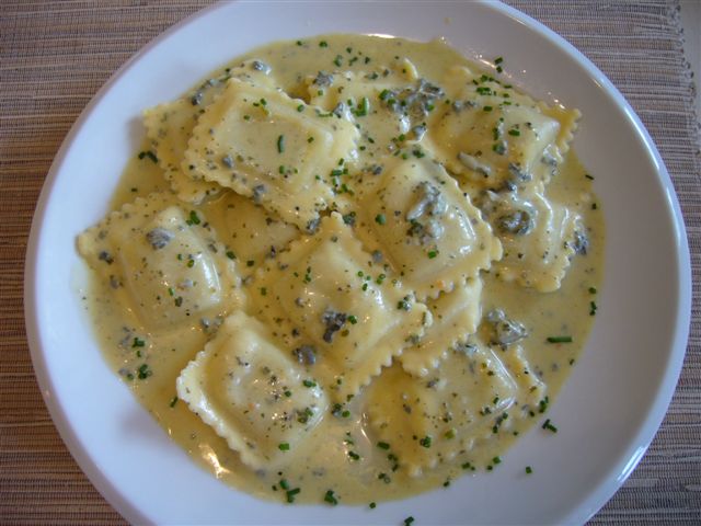 ... ich bin dabei den Tiefkühler aufzuräumem, darum gab es Spinatravioli an einer Gorgonzolasauce, zuvor einen Löwenzahnsalat aus dem Garten und danach ein Joghurteis mir Rhabarber-Kompott