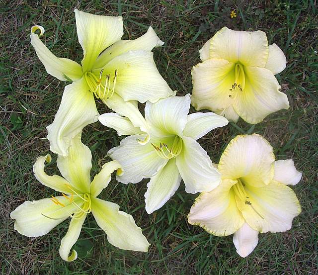 Ich muss etwas weiter zurück ausholen. @ Biene Dieser Sämling hat nur 4 Knospen, keine großen, und der Stängel biegt sich trotzdem bis zu Boden, daher wird er nicht bleiben.Gestern hatte auch der grünliche Sämling aus #152 wieder eine Blüte. Bis auf den Schlund war er gar nicht mehr so grün. Auch hatte ich eine andere Kamera.Hier ein Vergleichsfoto mit anderen Weißlichen von oben links nach rechts:GT05-KL19.24SahnebaumLight the Waymeine Sämling Wedding BandOooooh,-da bleibt einem ja der Mund offen steh´n...Nein,gell,aber den Northwind Dancer Sämling wirfst nicht auf den Kompost? Viel zu Schade drum...lg Biene