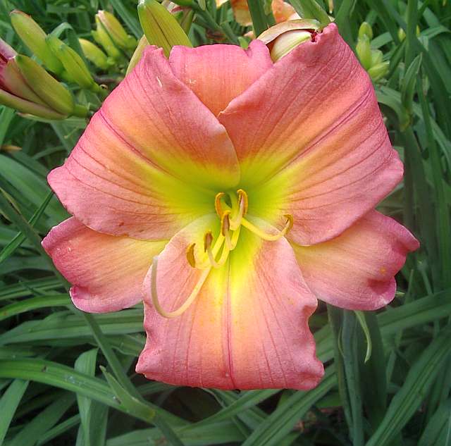 Schön blüht zur Zeit auch dieser Sämling von Callis.Er hat von allen am meisten zugelegt. Steht seit Herbst 2007 bei mir und hat etwa 20 Stängel. Sie sind schwer zu zählen, weil manche Verzweigungen ziemlich tief wegzweigen.GT05-KRI5 Crazy Lace X Malachite Prism