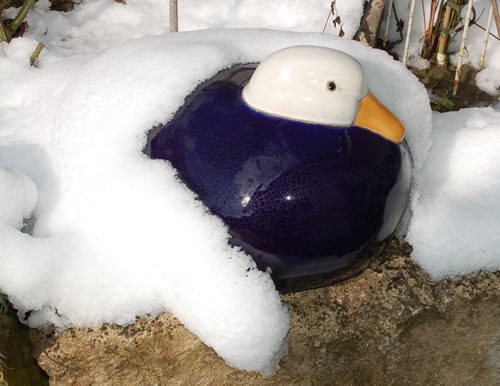 Waaas 6 Plus! Herrlich!Nach einer wunderschönen sternenklaren Nacht mit -3 Grad, jetzt mit bedecktem Himmel und kalter Bise um die 0 Grad.Der weisse Pelzmantel muss also die Ente noch ein wenig warm halten: