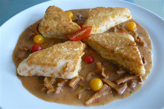 es gab:Fenchel-ApfelsalatPolenta-Linsenschnitten im Eimantel gebacken auf Pfifferlingsauce