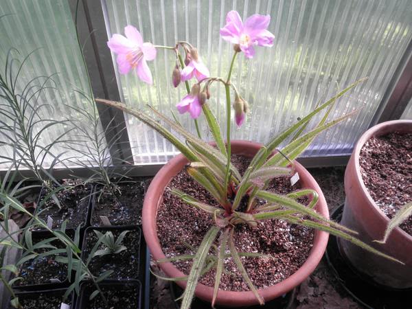 Drosophyllum - ja, ich hab Erfahrung. Hab nur leider momentan keine mehr. Auch der Samen ist mir ausgegangen....Kultur ganz anders als Drosera & Konsorten. Ich hatte sehr guten Erfolg mit Gemisch aus Lauberde: Quarzsand 1:2. Bis zum Sämlingsstadium recht feucht halten, danach wesentlich trockener. Tiefer Tontopf und Wasser von unten. Vollsonniger Stand, im Winter gerade frostfrei und so hell wie möglich. Verzweigen sich nach der Blüte, meine ältesten Exemplare wurden 2,5 Jahre alt. Bilden viele Samen.Niemals umtopfen oder Wurzeln stören, daher etwa 5 Samen/ Topf und abwarten was sich behauptet!Absolut tolle Pflanze!!!!lg,massonia