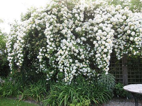Vorsicht mit 'Goldfinch', Manu.Sie ist wunderschön aber sehr wildwüchsig. Man muss ständig schneiden, wenn man nicht unbegrenzt Platz hat. Hier ein Foto vom vorletzten Sommer.