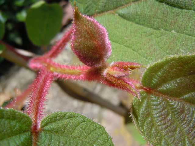 auch eine Monsunwaldpflanze:Actinidia deliciosa. Da in der Sonne schon die Weibchen sitzen, musste das Männchen als Liane in den Monsunwald.