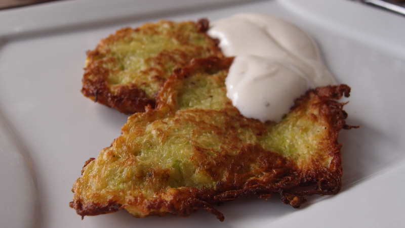 wir hatten gerade zucchinipuffer (aus einer vergessenen riesenkeule aus dem garten) mit angemachtem joghurt...