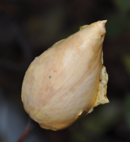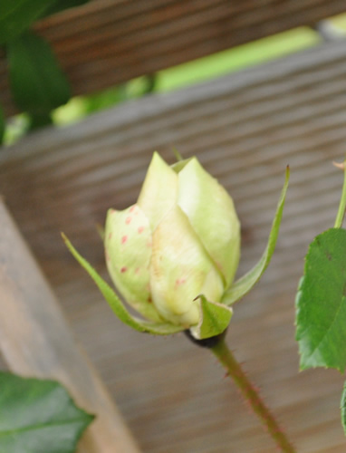 Knospe Rose de Resht, ob sie wohl noch aufgeht (heute ist es sehr sonnig bei uns)