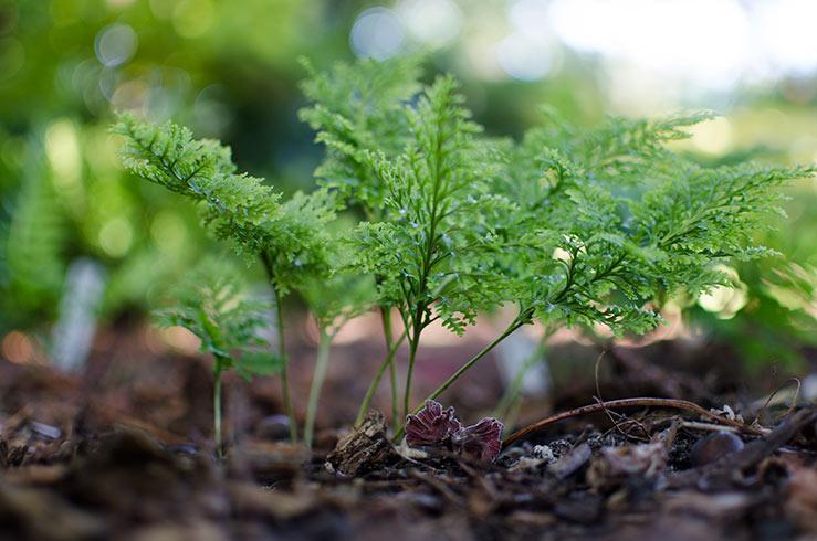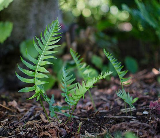 Polypodium vulgare 'Trichomanes Backhouse' hat schön ausgetrieben.