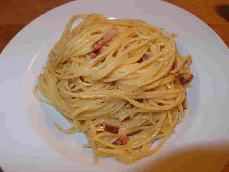 und gestern dann spaghetti carbonara. leider hat der mann auf sich warten lassen, somit war die ganze soße schon in die spaghetti gezogen. geschmeckt hats trotzdem