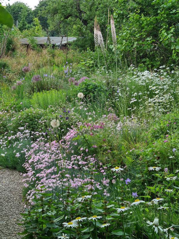 Hier säumen viele Nelken die Wege, alles verschiedene Sämlinge. Bei Windstille hüllt der Duft alles ein. Ich liebe das!