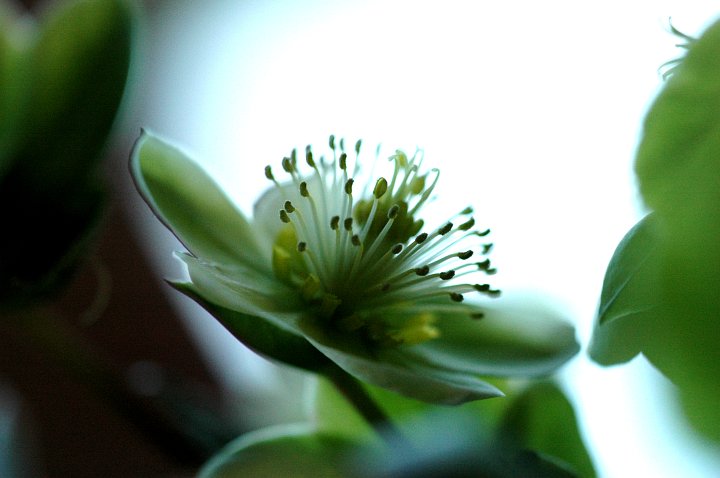 Ich hieve mal den "Grün ! ! ! "-Thread in den nächsten Monat - auch wieder mit einer Helleborus - im Detail trotz Sorte "Silvermoon" in Grün schimmernd.Aus dem Rahmen gefallen ...
