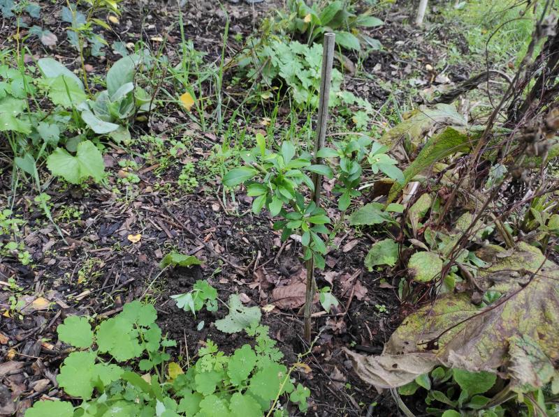 Nachdem das eine Exemplar schon ein paar Jahre ausgepflanzt steht, aber in "sommerluxuriösem" Boden (bleibt lang feucht dort), dachte ich, jetzt geh`ich mal aufs Ganze ins andere Extrem, weil laut Beschreibungen sollen sie ja auch trocken können. Ich habe diesen Frühling eine kleine `White Dazzler`an eine der trockensten Stellen im Garten gepflanzt, unter eine grosse Kiefer. Anfangs konnte ich noch giessen, ab Mitte Juli dann aber gar nichts mehr und ich dachte, tja...