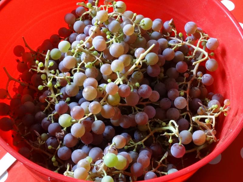 Haben heute zum ersten Mal überhaupt von unsrem Wein um die Terrasse was geerntet. Die Trauben sind zwar klein, aber sehr süss.