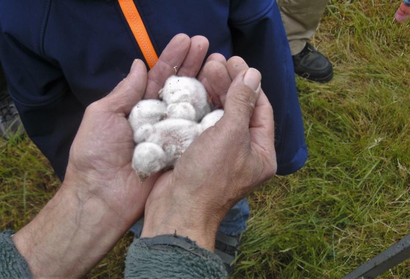 mir scheint es, als hätten diese Eulen keine festgelegte Brutzeit. Wie sonst ist es zu erklären, dass zum Beringungstermin Nestlinge der unterschiedlichsten Größe angetroffen werden. Manchmal sind sie noch ganz frisch: