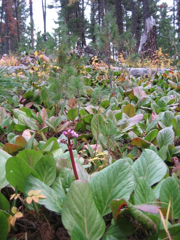 Hier habe ich noch ein Bild ausgegraben von Bergenia crassifolia in den Pinus sibirica-Wäldern der nördlichen Mongolei. Leider im Herbst, mit kleiner Nachblüte. Da gibt es weite flächige Teppiche der Bergenia, das sieht im Frühjahr bestimmt sehr toll aus!