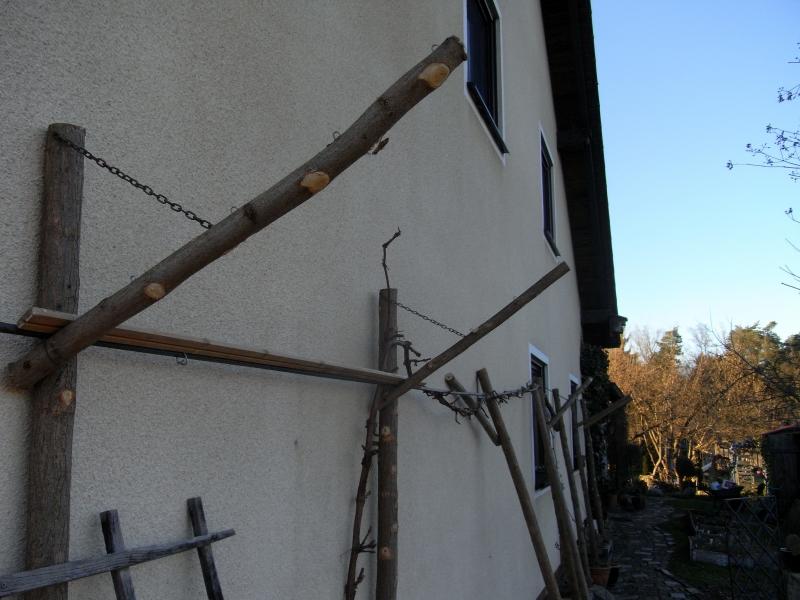 eine Art Wein-Pergola entsteht, aus Robinie,