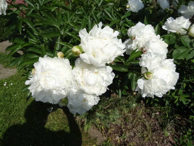 Bei mir blüht erst die Festiva Maxima. Die Sarah Bernhardt habe ich voriges Jahr erst umgesetzt. Sie hat sich wunderbar entwickelt, hat auch schon ein paar Blütenknospen, aber die sind noch kleiner, das dauert noch ein bißchen bis die blüht. Das sind meine einzige, die ich mit Namen kenne. Habe ja noch etliche, aber ohne Namen.
