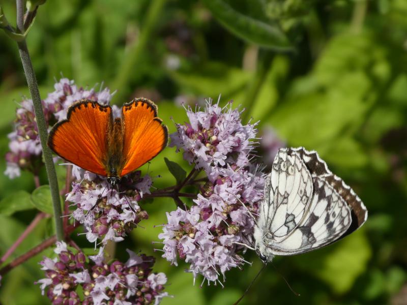 Vor ein paar Tagen waren vier Männchen auf einmal da. Lycaena phlaeas habe ich auch schon gesehen.