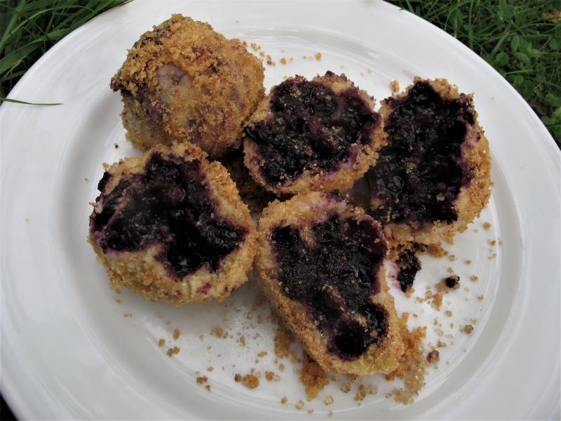Als Nächstes gab es dann Heidelbeerknödl aus Topfenteig: