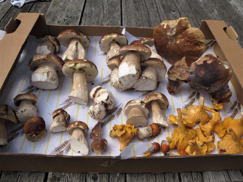 Die Schwammerln hatten sich aufgrund der Trockenheit zunächst rar gemacht, in der ersten Julihälfte gab es noch ein paar Eierschwammerl-/Pfifferlinggerichte, dann war nix, bis genau zum 19. August, dann aber :o Die Ausbeute auf dem Foto war an diesem Tag erst ca. ein Drittel der gesamten, man schwärmte nochmals aus. Und so gab es dann "Panierer" mit Sauce Tartare, Salat aus dem Garten und Weißbrot :D