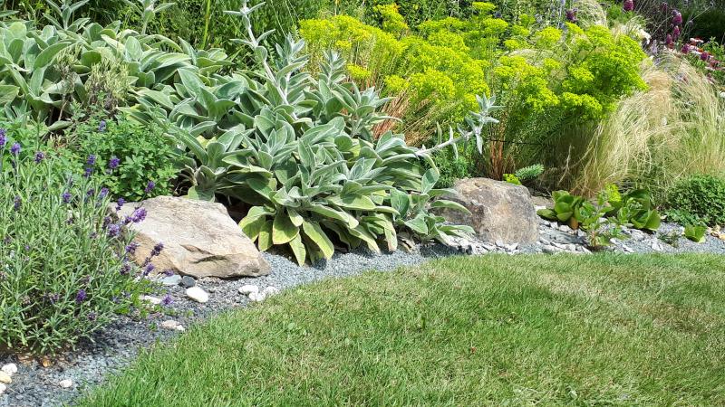 Das ist sehr hübsch geworden! :) Hast Du da eine unsichtbare Rasenkante verbuddelt, oder ist Dein Rasen so zahm, dass er nicht sofort das Beet überwuchert? Oder willst Du diese Beete auch immer wieder verbreitern und heimlich mehr Steine hineinschütten? ;)