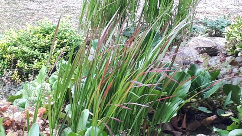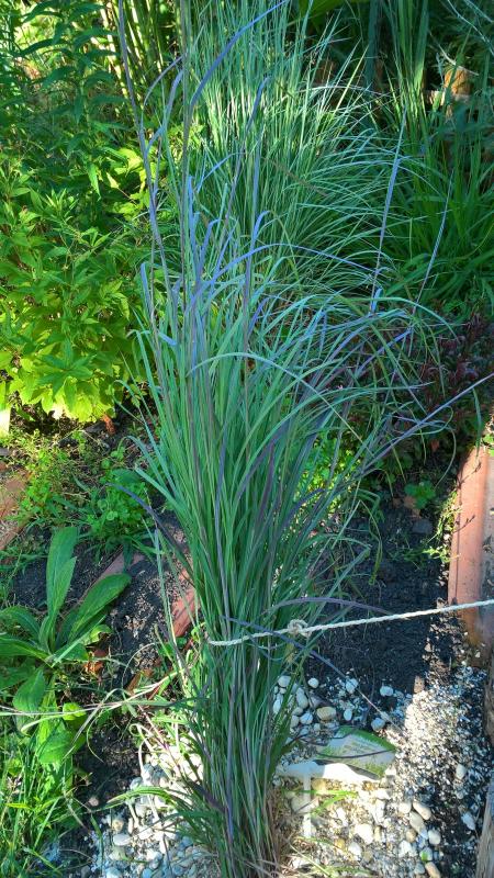 Und hier das herrlich lila schimmernde Schizachyrium "Standing ovation". Wie man sieht, ist es mit standing nicht weit her, aber das war bisher immer so, wenn die frisch aus dem Topf kamen. Bin zuversichtlich, dass es nächstes Jahr alleine stehen kann.