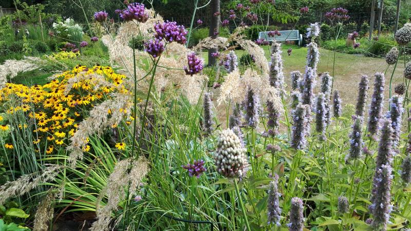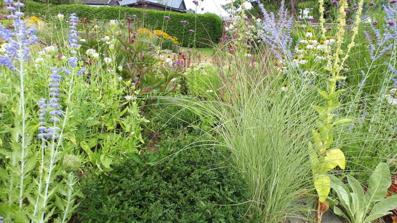 Stipa calamagrostis 'Algäu' hatten wir ja neulich allesamt verrissen. Macht aber bei der derzeitigen Dürre hier tatsächlich eine gute Figur. Ist ja auch noch jung! ;D