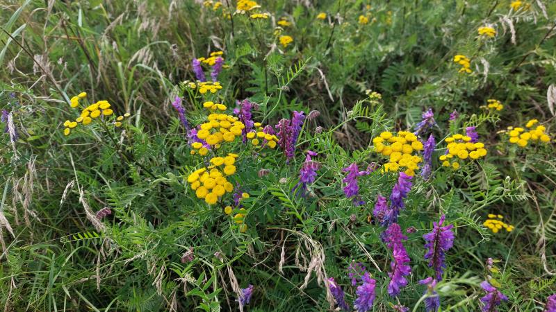 Oder Blau - mit Wegwarte Überraschend die niedrigen Exemplare. Eigentlich bei allen gezeigten Pflanzen. Ich meine, mal bei Witt oder so gelesen zu haben, dass, wenn man die wilden Sommerblüher im Frühsommer mäht, diese dann kurze Blütenstiele ausbilden, um möglichst schnell noch zur Blüte zu kommen. Auf diese Weise kann man die Höhe im Zaum halten - bei etwas späterer Blüte. Ähnlich dem Chelsea Chop. Hat da jemand Erfahrung mit?