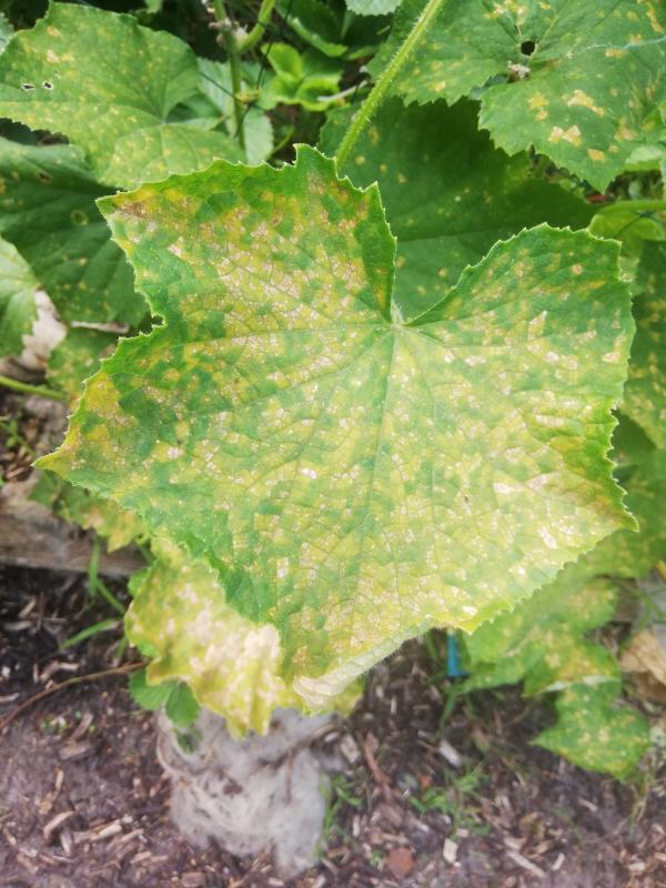 Mit Gurken übe ich noch. Ich hatte schon eine nette Ernte, nun aber sehen fast alle Blätter so aus, auch die jungen. Was tun ?