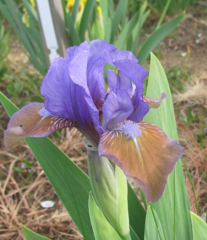 SDB `Sapphire Jewel´, die erste der heller Blauen mit dunklem Bart. Von der Schleifenblume muss sie mal weg, sonst verschwindet sie drunter.