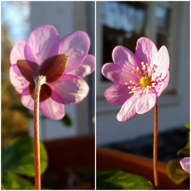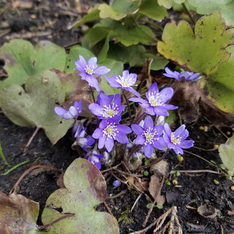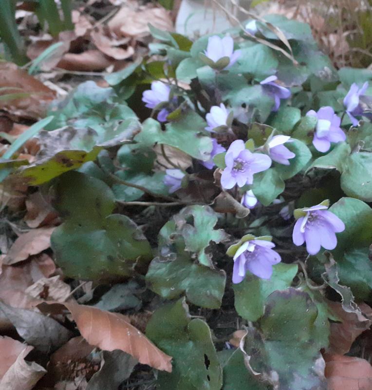 Hepatica transsilvanica Connie Greenfield letztes Jahr geteilt und an diese Stelle gepflanzt, blüht eher als die Mama.