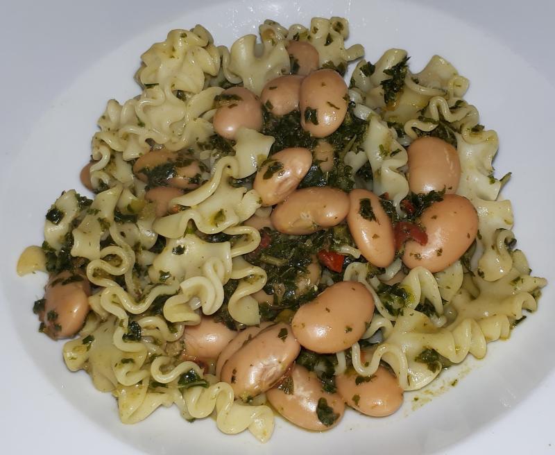 Hier gab es Chiocciole mit Karfiol/Blumenkohl, ein paar angebratenen und kurz gedünsteten Rispentomaten, Basilikum, am Ende frischer Butter, Parmesan und Ricotta salata. Der war noch von der Pasta alla Norma übrig und paßte gut dazu.