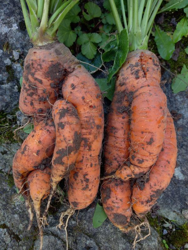 Ich komme mit den Möhren nicht zurecht: Das Beet extra gut gelockert, Steine sind keine drin, und trotzdem alles verwachsen und beinig. Ich bin der einzige bei uns, der sich die Mühe macht sowas zu verarbeiten.